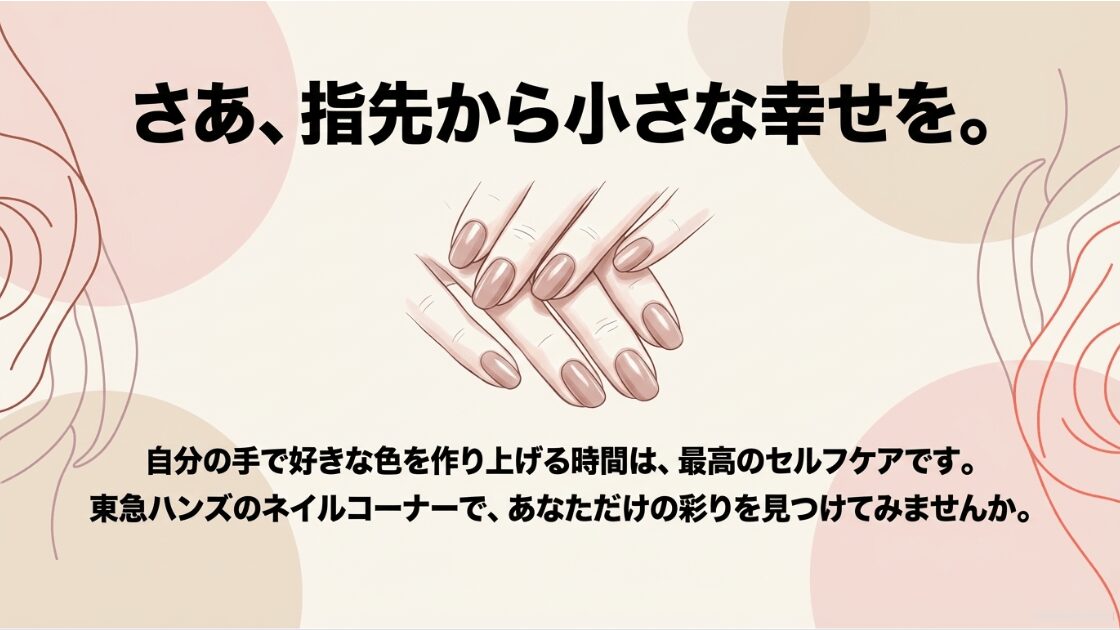 これからセルフネイルに挑戦したい方はぜひ参考にしてみてください。これさえ読めば、東急ハンズでの買い物がもっと楽しくなり、あなたにぴったりのネイルライフが見つかるはずですよ^^
