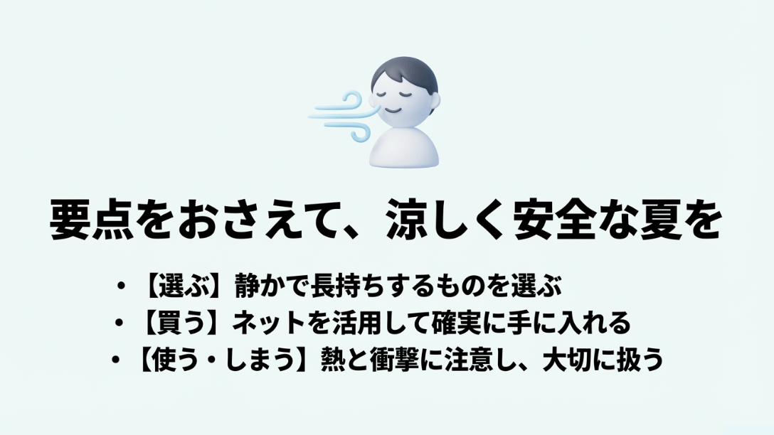 この記事を参考に、自分にとって最高の一台と出会い、今年の猛暑も笑顔で乗り切れることを心から願っています。