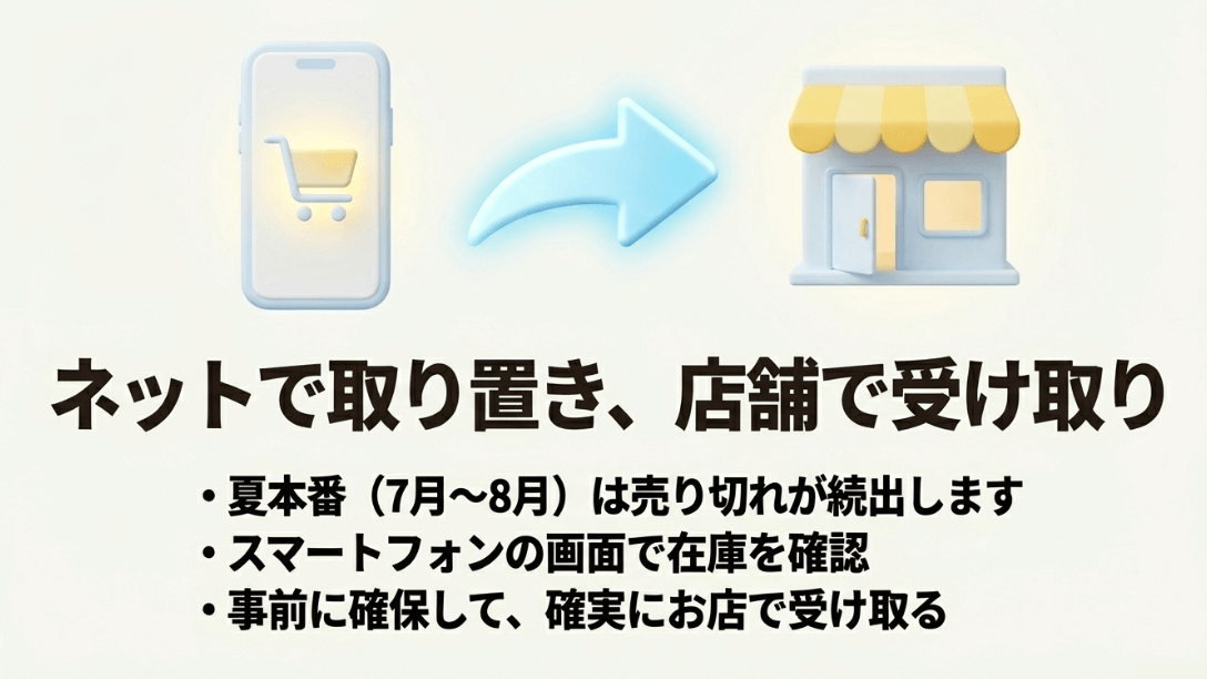 さらに、そのままネットストアで購入して店舗で受け取るという選択をすれば、確実に商品を確保した状態で来店可能です。この店舗受け取りサービスの最大の魅力は、送料が一切かからないことに加え、最短で注文から1時間程度で準備が整うというスピード感にあります。