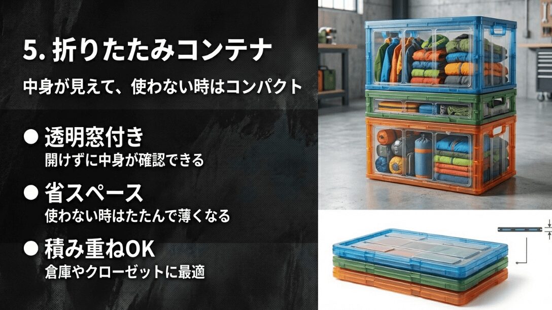 中身が見えて使わない時はコンパクトになる折りたたみコンテナ