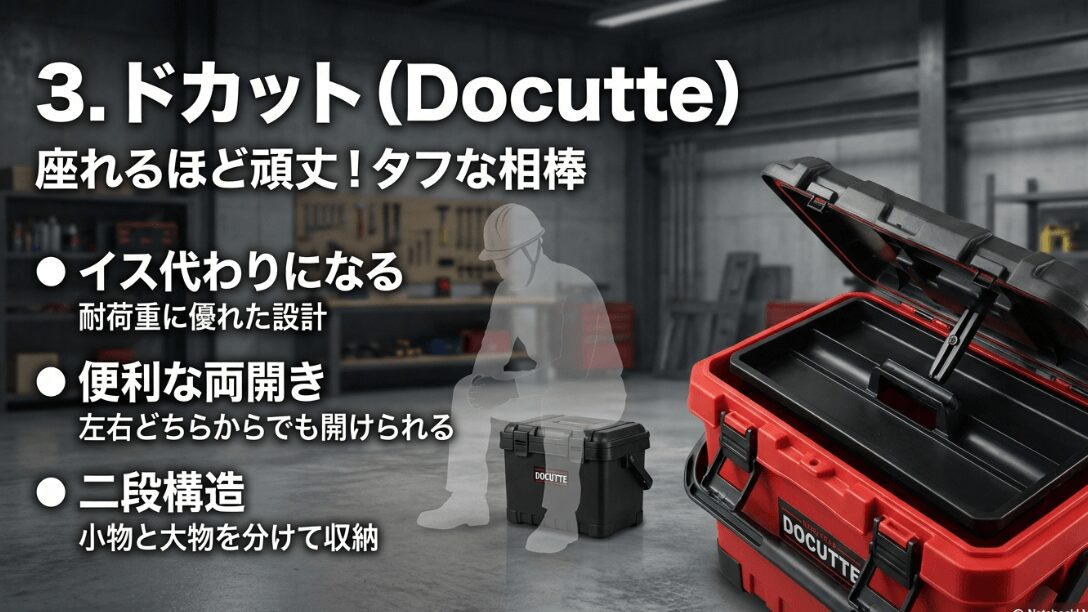 「どんなに雑に扱っても壊れない、究極の収納ボックスが欲しい」という方に迷わずおすすめしたいのが、リングスターの「ドカット(Docutte)」です。