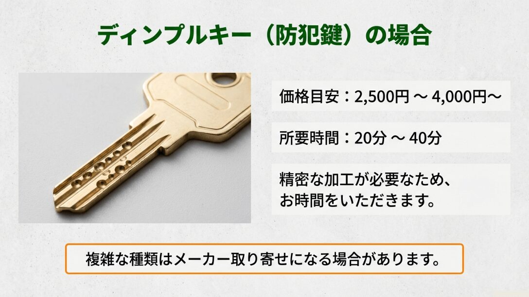 ディンプルキーの当日作成とメーカー取り寄せ